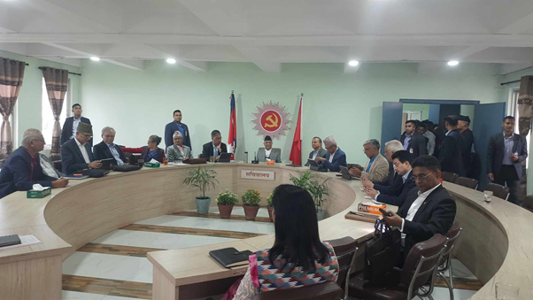 ललितपुरको च्यासलस्थित पार्टी मुख्यालयमा बैठक सुरू भएको हो । बैठकमा एमाले अध्यक्ष तथा प्रधानमन्त्री केपी शर्मा ओलीलगायत पार्टीका शीर्ष नेता सहभागी छन् ।