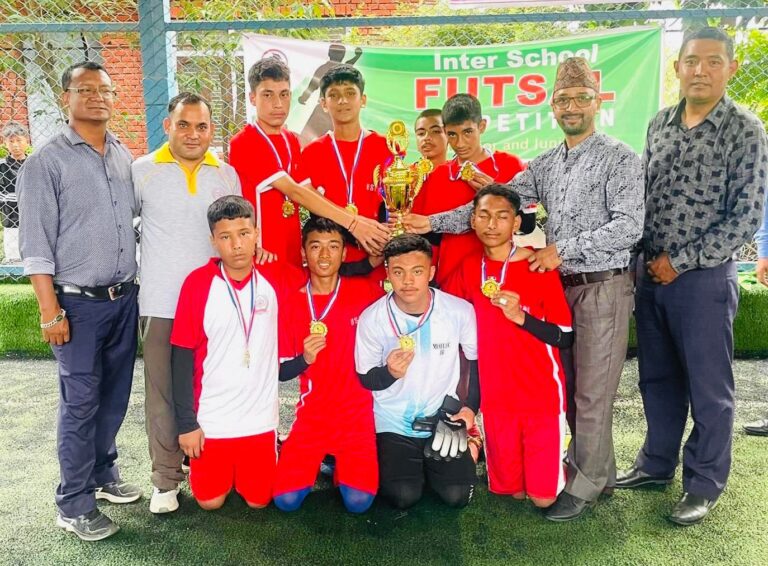 काठमाडौं १३ भदौ । संयुक्त विद्यालय विकास मन्च (यूएसडीएफ) को आयोजनामा माध्यमिक तह र आधारभूत तहबीच छात्रहरुको अन्तर विद्यालय फुटसल प्रतियोगिता–२०८१ सम्पन्न भएको छ । बुधबार आयोजित उक्त फुटसल प्रतियोगिता चाँगुनारायण नगरपालिका–९ ताथलिको सरस्वती शिक्षा सदन स्कुल माध्यमिक र आधारभूत दुवै तहको खेलमा विजेता भएको छ ।