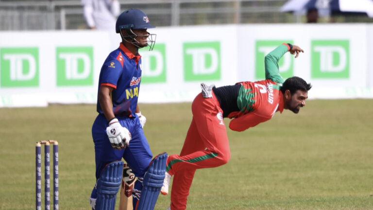 नेपालका लागि गुलसन झा एक्लैले पाँच विकेट लिए । त्यस्तै करण केसीले दुई तथा सन्दीप लामिछाने र आरिफ शेखले एक/एक विकेट लिए ।