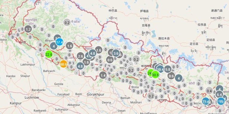 आगामी २४ घण्टामा कर्णाली र सुदूरपश्चिम प्रदेशका केही तथा बाँकी प्रदेशका पहाडी भागका केही स्थानमा मेघगर्जन र चट्याङसहित हल्कादेखि मध्यम वर्षाको सम्भावना रहेकाले ती क्षेत्रमा हुनसक्ने गेग्रान बहाव, बाढी, पहिरो तथा भूक्षयजस्ता प्रकोपको जोखिम वा क्षतिबाट बच्न तथा यसबाट ती क्षेत्रमा दैनिक जनजीवनलगायत कृषि, स्वास्थ्य, पर्यटन, पर्वतारोहण, सडक तथा हवाई यातायातमा आंशिक असर पर्ने सम्भावना रहेकाले आवश्यक सतर्कता अपनाउन मौसम पूर्वानुमान महाशाखाले अनुरोध गरेको छ ।