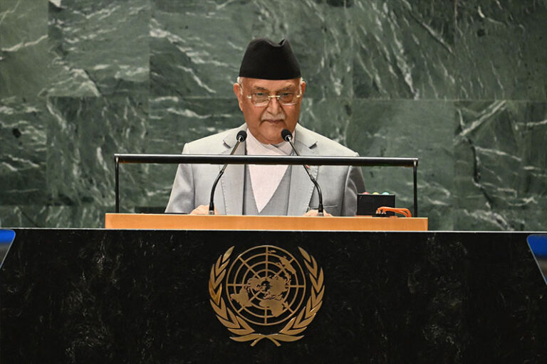 काठमाडौं, असोज १० । प्रधानमन्त्री केपी शर्मा ओलीले आज संयुक्त राष्ट्रसंघको ७९औं महासभालाई सम्बोधन गर्दैछन्। न्यूयोर्कमा रहेका ओलीले स्थानीय समय अनुसार बिहान ९ बजे सुरु हुने महासभालाई सम्बोधन गर्ने कार्यक्रम रहेको छ। त्यसअघि बिहानी सत्रमा ९ देशमा प्रमुखले सम्बोधन गर्ने कार्यक्रम रहेको राष्ट्रसंघले जनाएको छ। त्यसपछि दिउँसो सत्रमा पहिलो वक्ताको रुपमा प्रधानमन्त्री ओलीको सम्बोधन गर्नेछन् ।
