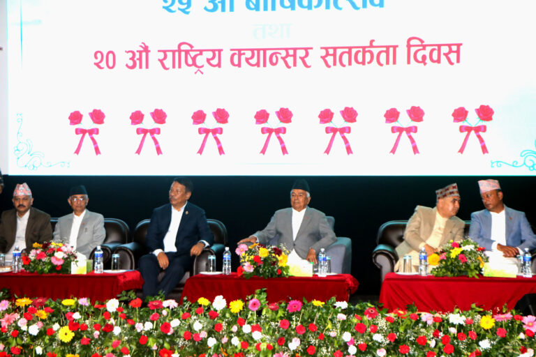 “क्यान्सर रोगको उपचार, रोकथाम तथा नियन्त्रण र अध्ययन अनुसन्धानमा आवश्यक जनशक्ति उत्पादन गर्न तथा अस्पतालको सेवालाई चुस्तदुरुस्त र अन्तर्राष्ट्रियस्तरमा स्तरोन्नति गर्न नेपाल सरकारलाई विशेष ध्यान पु¥याउनु आग्रह गर्दछु”, राष्ट्रपति पौडेलले भने ।