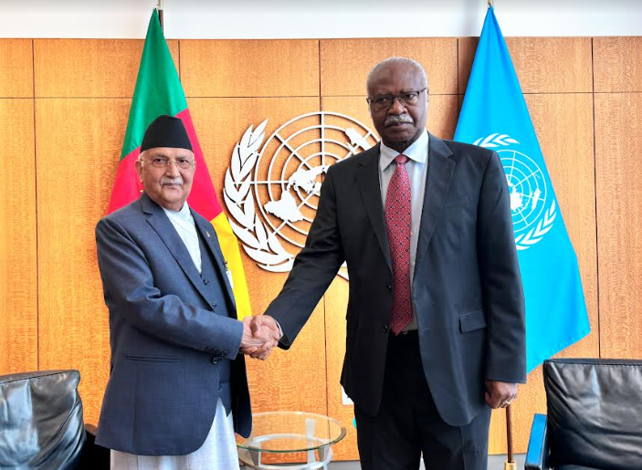 न्युयोर्क, असोज ११ । प्रधानमन्त्री केपी शर्मा ओली र संयुक्त राष्ट्रसङ्घको ७९औँ महासभाका अध्यक्ष फिलेमोन याङबीच भेटवार्ता भएको छ ।नेपाली प्रतिनिधिमण्डलको नेतृत्व गर्दै अमेरिकाको न्युयोर्कमा रहेका प्रधानमन्त्री ओलीले राष्ट्रसङ्घको मुख्यालयमा अध्यक्ष याङसँग भेट गरेका हुन्।