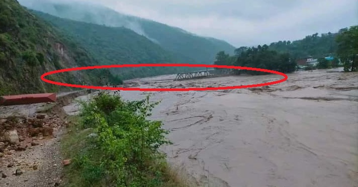 काठमाडौं, १२ असोज । अविरल वर्षाका कारण सुनकोशीमा आएको बाढीले रामेछाप र सिन्धुली जोड्ने खुर्कोटको पक्की पुल बगाएको छ । बाढीले पक्की पुल नजिकै रहेको झोलुङ्गे पुलसमेत बगाएको छ ।