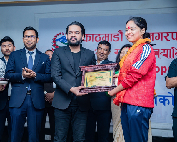 काठमाडौँ महानगरपालिकाद्वारा पलेशालाई नगद पाँच लाखसहित सम्मान