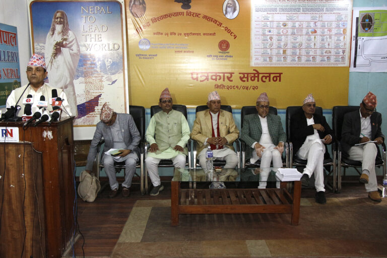 नेपालको आर्थिक समृद्धि, शान्तिपूर्ण नेपाल र विश्वशान्तिको संकल्पसहित महायज्ञको आयोजना गरिएको बताइएको छ । महायज्ञ यही कात्तिक २१ देखि २५ गतेसम्म काठमाडौंको भृकुटीमण्डपमा हुने बताइएको छ ।