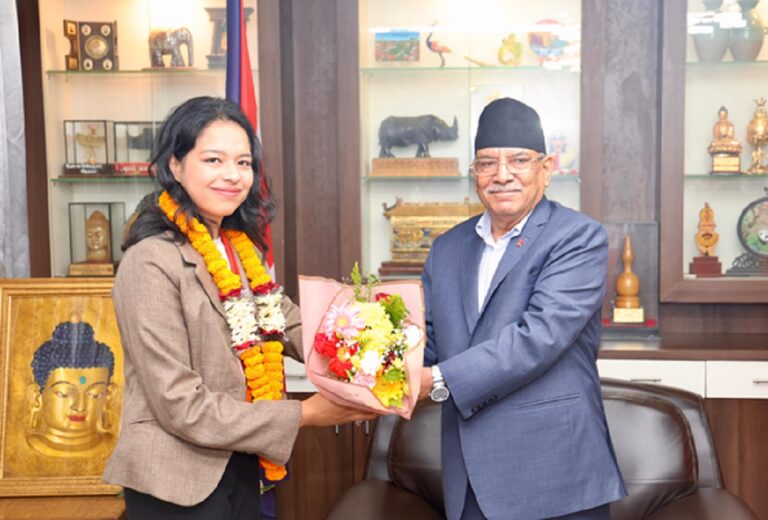 काठमाडौँ, २१ भदौ । पूर्वप्रधानमन्त्री एवं नेपाल कम्युनिष्ट पार्टी (माओवादी केन्द्र) का अध्यक्ष पुष्पकमल दाहाल ‘प्रचण्ड’ले पाराओलम्पिकमा कास्य पदक विजेता पलेशा गोवर्धनलाई सम्मान गरेका छन् ।