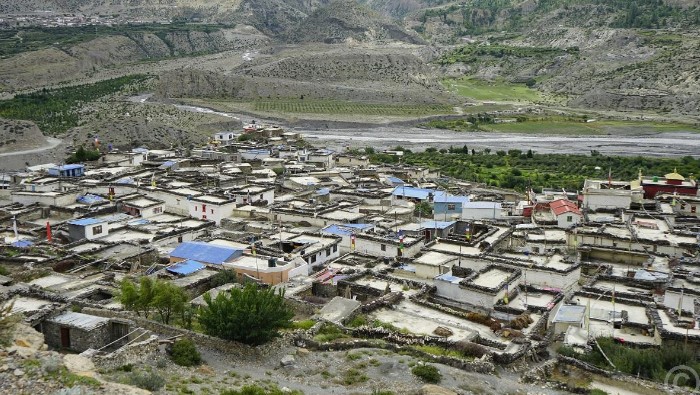 म्याग्दी, भदौ २३ । कालीगण्डकी नदी किनारको बगरमा हराभरा स्याउ बगैँचा । डाँडामाथि माटोका छाना भएका परम्परागत घरहरू । बीचमा सडक । भित्तातर्फ सुक्खा पहाडमाथि हरियाली वनजङ्गल । झुरुप्पको बाक्लो बस्तीभित्र ढुङ्गा बिछ्याएका सफासुग्घर गल्लीहरू । चिटिक्क परेका घरहरूमा बसोबास गर्ने नेपालका अल्पसङ्ख्यक थकाली समुदायको भाषा, संस्कृति, रहनसहन र जीवनशैली । गाउँको डिलमा बगैँचासहितको उद्यानमा बसेर स्याउका दाना र नाउरको प्रतिमाको पृष्ठभूमिमा देखिने हिमाल, नदी र बस्तीहरू ।