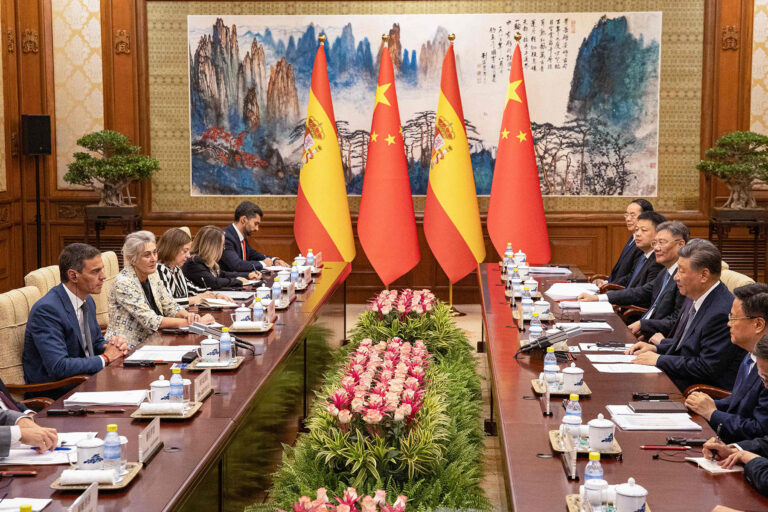 भेटमा स्पेनका प्रधानमन्त्री पेड्रो सान्चेजले बेइजिङ र युरोपियन युनियनबीचको गतिरोधका बावजुद चीनसँग सम्बन्ध प्रगाढ बनाउने उद्देश्यका साथ चीन भ्रमणका क्रममा सोमबार ‘निष्पक्ष व्यापार व्यवस्था’का लागि आह्वान गरेका छन्।