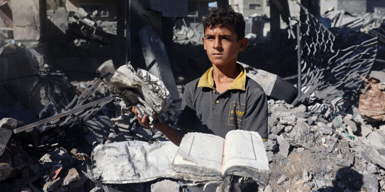 गाजामा धेरै विद्यालयहरू विस्थापितलाई आश्रय दिन पुनः निर्माण गरिएको छ भने विद्यमलयमा बारम्बारको युद्धले विथोलिएका गाजाको जनसङ्ख्याको ठुलो हिस्साले आश्रय लिई रहेको छ ।