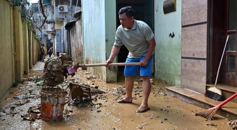 भियतनाममा मौसममा सुधार आएसँगै सफा आकाशमुनि राजधानी हनोईका केही भागमा पानी कम भएपछि बासिन्दाहरू सडकबाट भग्नावशेष र हिलो सफा गर्न घरबाहिर निस्केको देखिएको छ ।