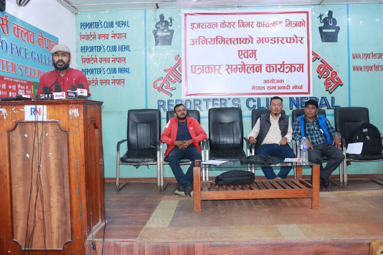 काठमाडौं, २९ भदौ । नेपाल समाजवादी मोर्चाले विनापूर्वाधार सेटिङ र आर्थिक चलखेलको आधारमा सीटीईभीटीबाट मान्यता दिएका केयरगिभर सेन्टरहरुको अनुगमन तथा निरीक्षण गरी तिनीहरुको अनुमति खारेज हुनुपर्ने माग राखेको छ । आज (शनिबार) रिपोर्टर्स क्लब नेपालमा पत्रकार सम्मेलन गरी मोर्चाले त्यस्ता प्रशिक्षण केन्द्रले सर्टिफिकेटमात्रै विक्रि गर्ने गरेको भन्दै अनुगमन र कारबाहीको लागि सरकारको ध्यानाकार्षण गराएको हो ।