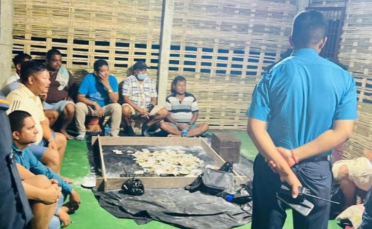 प्रहरीले छापा मार्दा उनीहरूको साथबाट १८ लाखभन्दा बढी नगद बरामद भएको छ । बाँस घारीभित्र बनाइएको टहरामा जुवा खेलिरहेको अवस्थामा प्रहरीले शनिवार राति ८ बजेतिर छापा मारेको थियो ।