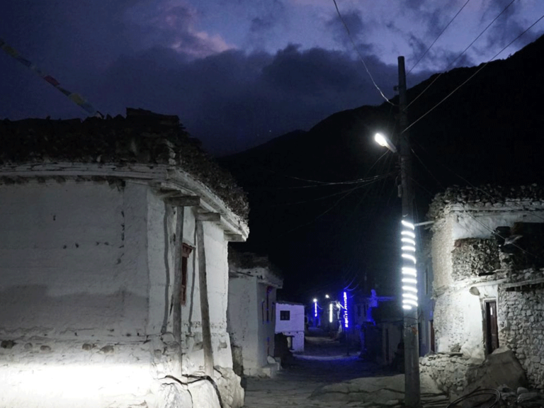 ठिनी, जोमसोम, एक्केभट्टी, स्याङ र मार्फामा बत्ती जडान गरेर रातको समयमा झिलीमिली बनाइएको छ । सडकबत्तीको महसुल गाउँपालिकाले बेहोर्ने निर्णय भएको छ । घरपझोङका बस्ती रातको समयमा झलमल्ल र मनमोहक देखिन्छन् ।