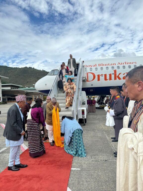 काठमाडौं, १७ असोज । पूर्वराजा ज्ञानेन्द्र शाह भुटान पुगेका छन् । उनी सपरिवार भुटान गएका हुन् । भुटानको पारो अन्तर्राष्ट्रिय विमानस्थलमा शाहको परिवारलाई भव्य स्वागत गरिएको छ ।