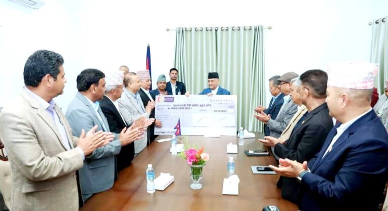 काठमाडौँ २० असोज । नेकपा (एमाले) ले प्रधानमन्त्री दैवी प्रकोप उद्धार कोषका लागि ५० लाख हस्तान्तरण गरेको छ । प्रधानमन्त्री तथा मन्त्रिपरिषद्को कार्यालय, सिंहदरबारमा प्रधानमन्त्री केपी शर्मा ओलीलाई भेटेर एमालेका वरिष्ठ उपाध्यक्ष ईश्वर पोखरेलसहितको टोलीले चेक हस्तान्तरण गरेका हुन् ।