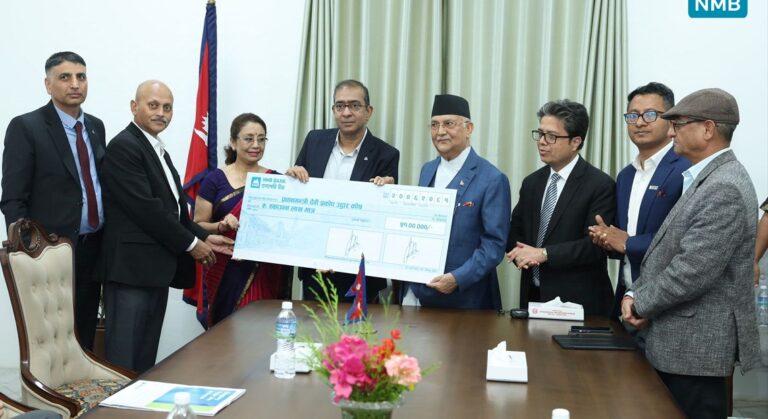 काठमाडौं । एनएमबी बैंकले प्रधानमन्त्री दैवी प्रकोप उद्धार कोषमा ५१ लाख रुपैयाँ सहयोगस्वरुप प्रदान गरेको छ। उक्त सहयोगले बाढी पहिरोबाट प्रभावित समुदायलाई राहत तथा पुनर्स्थापना गराउन र बिग्रिएका, भत्किएका संरचनाहरुको पुनर्निर्माण गर्न महत्वपूर्ण योगदान पुग्ने विश्वास बैंकले लिएको छ।
