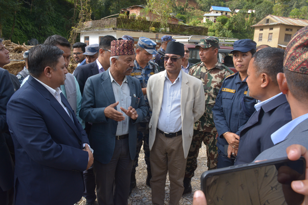 गृहमन्त्री लेखकद्धारा बाढीपहिरो प्रभावित भूमिडाँडा र बेथानचोक क्षेत्रको निरीक्षण
