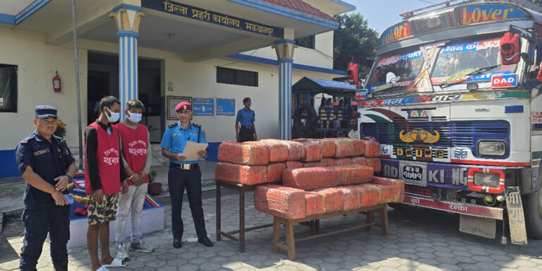 काठमाडौं, असोज २२ गते । मकवानपुर प्रहरीले पेट्रोलियम पदार्थ बोक्ने ट्याङ्करबाट ३९२ किलो गाँजा बरामद गरेको छ । पूर्व पश्चिम राजमार्ग अन्तर्गत हेटौँडा–१५ रातमाटे चेकपोष्टबाट प्रहरीले ट्याङ्कर, गाँजासहित दुई जनालाई पक्राउ गरी मङ्गलवार सार्वजनिक गरेको हो ।