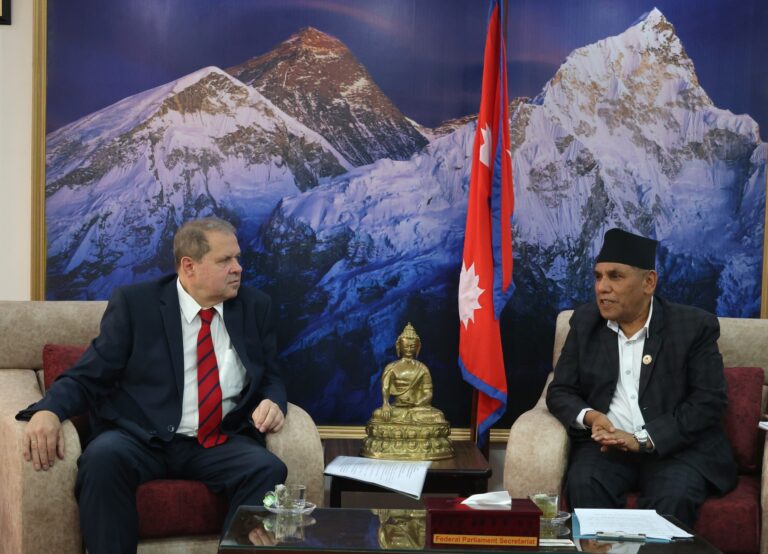 काठमाडौँ, २२ असोज । राष्ट्रियसभा अध्यक्ष नारायणप्रसाद दाहालसँग नेपालका लागि रुसी महासङ्घका राजदूत अलेक्सेइ नोभिकोभले शिष्टाचार भेट गरेका छन् । आज सिंहदरबारस्थित अध्यक्ष दाहालको कार्यकक्षमा राजदूत नोभिकोभले शिष्टाचार भेट गरेका हुन् । भेटमा द्विपक्षीय सम्बन्ध, सहयोग, सहकार्य र संसदीय अनुभव आदानप्रदानलगायत विषयमा कुराकानी भएको अध्यक्ष दाहालको सचिवालयले जनाएको छ ।