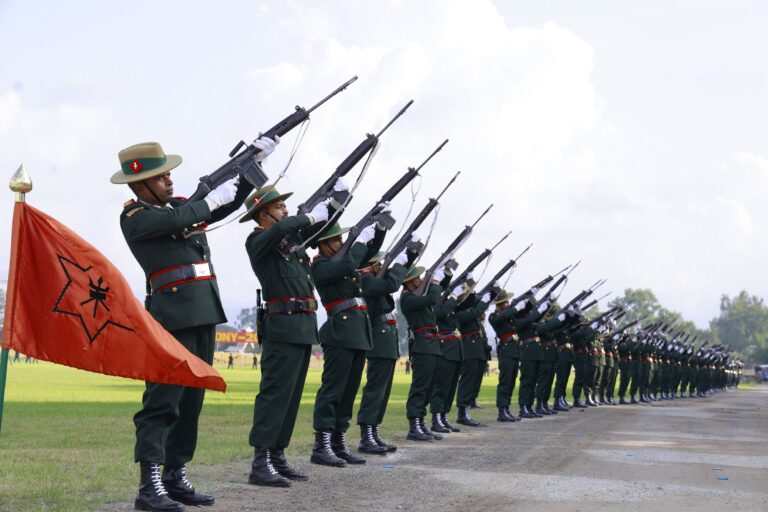 काठमाडौं, २४ असोज । काठमाडौंको बसन्तपुरस्थित दशैंघरमा फूलपाती भित्राइएपछि नेपाली सेनाले सैनिक मञ्च टुँडिखेलमा तोप पड्काएर फूलपाती बढाइँ गरेको छ । गोरखा दरबारबाट पठाइएको फूलपाती आज (बिहीबार) अपराह्न बाजागाजासहित वसन्तपुर भित्राइएको हो ।