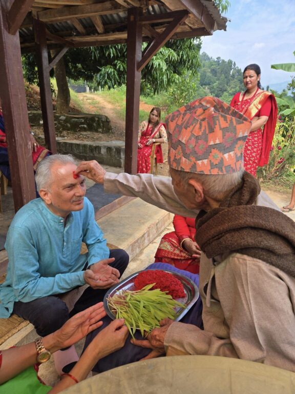 काठमाडौं, २६ असोज । नेपाल समाजवादी पार्टीका अध्यक्ष एवम् पूर्व प्रधानमन्त्री डा. बाबुराम भट्टराईले आफ्नो बुवा भोजप्रसाद भट्टराईबाट पुर्खौली घरमा सपरिवार विजयादशमीको टीका ग्रहण गरेका छन् ।