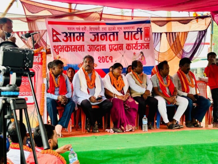 बडादशैं, शुभ दिपावली एवं छठ पर्वको अवसरमा रौतहटको मौलापुर नगरपालिकाको सोनरनियामा आज आयोजित शुभकामना अदानप्रदान एवं भेटघाट कार्यक्रममा सहभागि आजपा अध्यक्ष साहले समृद्ध पालिका निर्माणका लागि मौलापुर नगरपालिकामा मेयर रिनाले लागु गरेको आयोजना आफ्नो पालिकामा समेत लागु गर्नुपर्ने बताए ।
