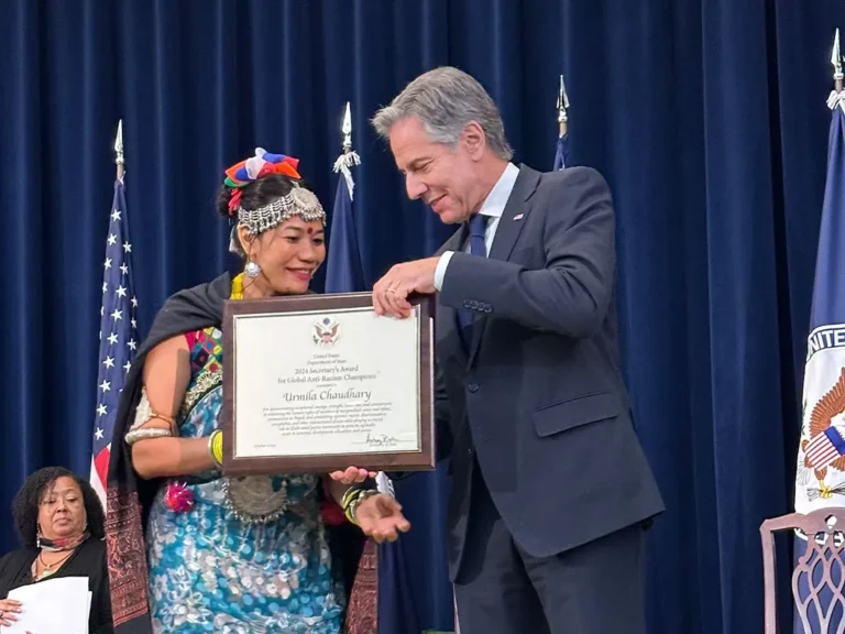 वाशिङ्गटन डिसी (अमेरिका), ६ कात्तिक । नेपालकी सामाजिक अभियन्ता उर्मिला चौधरी ग्लोबल एन्टी रेसिजम च्याम्पेनसिप अवार्डद्वारा सम्मानित भएकी छन्। अमेरिकी विदेशमन्त्री एन्टोनी व्लिङ्केनले चौधरीसहित छ देशका सामाजिक अभियन्तालाई सोमबार यहाँ आयोजित कार्यक्रममा उक्त अवार्ड प्रदान गरेका थिए ।