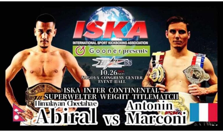 काठमाडौं, ६ कार्तिक । जापानको नोगोया सहरमा हुन लागेको आईएसकेए किक् बक्सिङ वर्ल्ड च्याम्पियनमा नेपालको प्रतिनिधित्व गर्दै अविरल घिमिरे (हिमालयन चित्ता) खेल्ने भएका छन् । आगामी अक्टोबर २६ मा नोगोया कंग्रेस सेन्टरमा दिनको ३ बजेदेखि हुन गइरहेको उक्त वर्ल्ड च्याम्पियनसिप टाइटलमा उनले फ्रान्सका एन्टोनिन मार्कोनीसँग प्रतिस्पर्धा गर्ने भएका हुन् ।