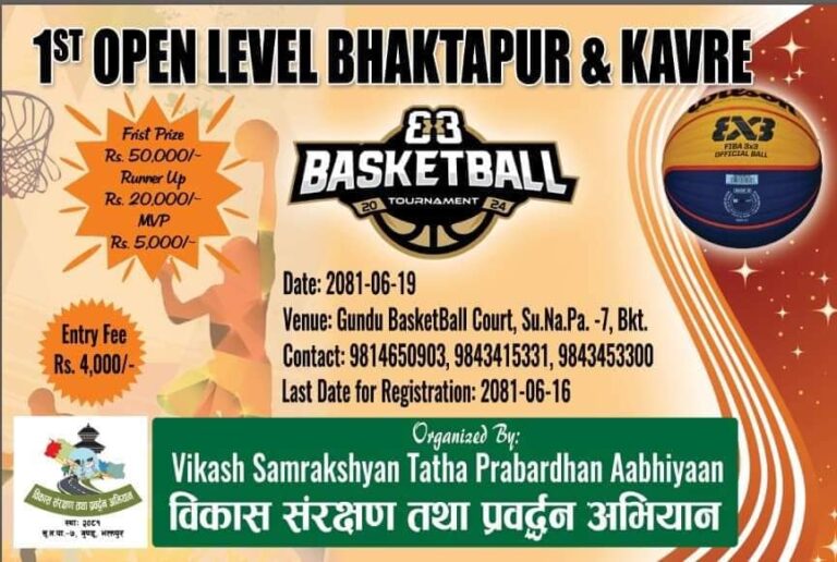 काठाडमौं, ६ कार्तिक । यही कार्तिक १० गते भक्तपुरकै ठूलो राशीको ‘हाफकोर्ट’ बास्केटवल प्रतियोगिता हुने भएको छ । दशैंअगाडी नै गर्ने भनिएता पनि बाढीपहिरो तथा अन्य प्राकृतिक विपत्तीका कारण देशनै शोकमा परेकाले उक्त कार्यक्रम स्थगित गरिएको थियो । आयोजकले प्रतियोगिताको सबै तयारी पूरा भएको जनाएको छ ।