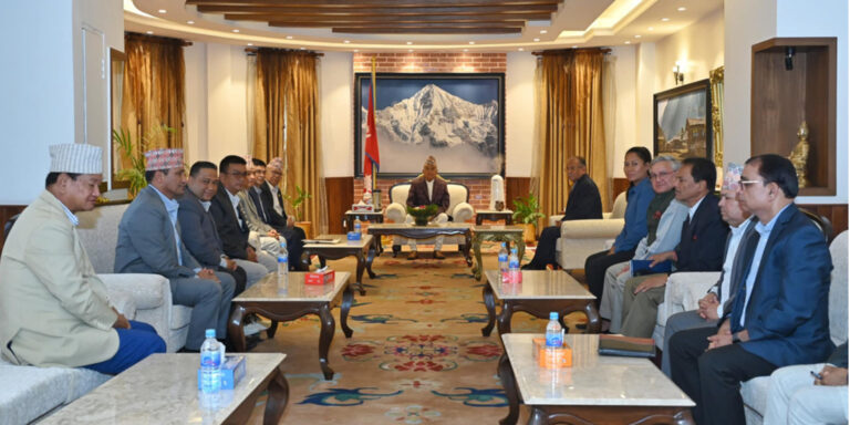 राष्ट्रपति पौडेलसँग प्रचण्डसहित विपक्षी दलका नेताहरुको भेट, अध्यादेश आए रोकिदिन अनुरोध