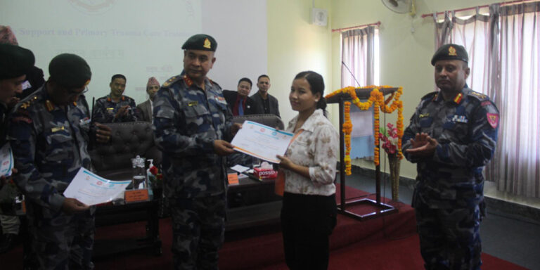 मुग्लिन (चितवन), ८ कात्तिक । सशस्त्र प्रहरी बल विपद् व्यवस्थापन तालिम शिक्षालयले कुरिनटारस्थित पृथ्वी हाइवे ट्रमा सेन्टरमा आयोजना गरेको दुईदिने ‘लाइफ सपोर्ट’ र ‘प्राइमेरी ट्रमा केयर’ तालिम सम्पन्न भएको छ ।
