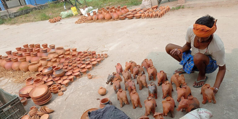 महोत्तरी, ८ कात्तिक । दीपावली र छठको आगमनसँगै महोत्तरीसहित मधेशकाका हटियामा जताततै माटाका भाँडा देखिन्छन् । सामान राख्ने तौला, दही जमाउने छ्याँची, पानी राख्ने घडा, बत्ती बाल्ने दियो, छ्याँची छोप्ने ढकन, र कलशका रूपमा प्रयोग हुने अम्खोरा र छठ पर्व लगत्तै सुरु हुने सामाचकेवा तथा त्यसबेला खेलिने हात्ती र खेलौनासहितका माटाका भाँडा हाटका आकर्षण बनेका छन् ।