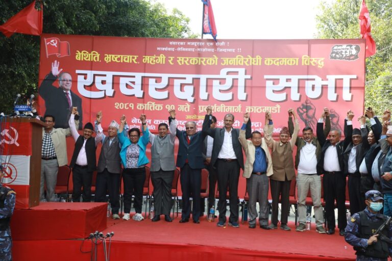 सुन्धाराबाट सुरु भएको खबरदारी र्याली रत्नपार्क–पुतलीसडक हुँदै भृकुटीमण्डपमा पुगेर सभामा परिणत भएको थियो ।