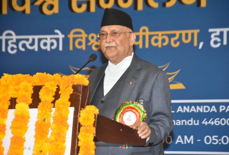 विश्व नेपाली साहित्य महासङ्घद्वारा आज आयोजित तेस्रो विश्व नेपाली साहित्यिक सम्मेलनमा प्रधानमन्त्री ओलीले साहित्य मनोरञ्जनका साथै समाजलाई जागृत गर्दै अग्रगमनको सन्देश दिने विधा भएकाले यसको महत्व अधिक रहेको बताए ।