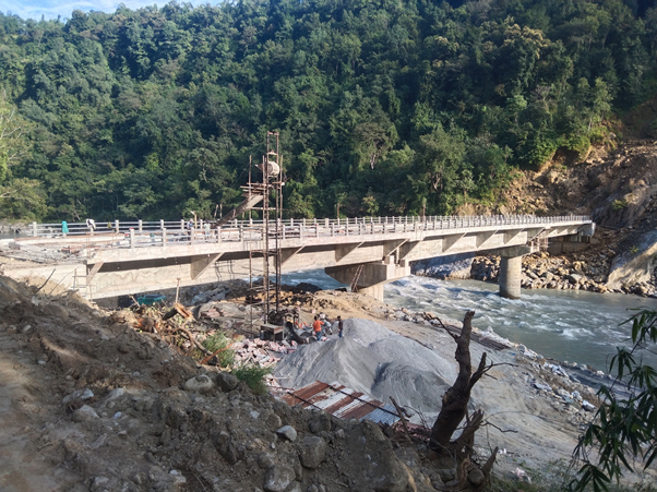 रसुवा÷श्री गीता÷फेवा संयुक्त निर्माण कम्पनीले विसं २०७३ असोज ९ गते सम्झौता गरेको ठेक्काको काम ढिला गरी सकिएको हो । उक्त पुलको पूर्वतर्फको खण्डमा सडकले जोड्न बाँकी छ । “पहरो परेकाले झन्डै ५० मिटर सडक नयाँ बनाउनुपर्ने छ । यो सडक बनेपछि मङ्सिरभित्र मोटर गुड्नेछ”, ठेकेदार कम्पनीका प्रतिनिधि नीलकुमार राईले भने ।