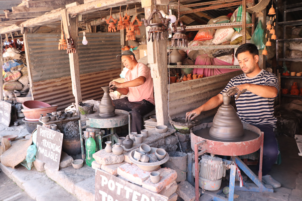 आकर्षक माटोको भाँडा बनाउने भक्तपुर नगरपालिका–४ बोलाछेंँ तालाक्वो अर्थात् पोर्टरी स्क्वायरका प्रजापति समुदायका अधिकांश परिवार तिहारका लागि आवश्यक पाला, धुपौरो, घैँटोलगायत अन्य सामग्री बनाउन व्यस्त देखिन्छन् ।