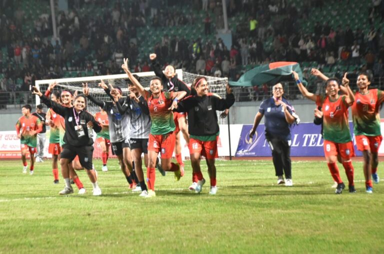 काठमाडौं, १४ कार्तिक । साफ वुमन्स च्याम्पियनसिपको उपाधि बंगलादेशले जितेको छ । नेपाललाई २-१ ले पराजित गर्दै बंगलादेशले उपाधि चुमेको हो । दोस्रो हाफको सुरुवातमा बंगलादेशले सुरुवाती गोल गरेको थियो ।