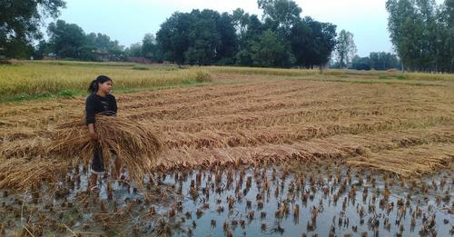 नेपालगञ्ज–१७ थुकैलागाउँकी किसान मायावती यादवले वर्षभरि खाने धान क्षणभरमै भिजेर नष्ट भएको बताए । उनले भने, “धान काटेको तीन दिन भयो, दिपावली मनाएर घर लैजाने भनेको पानीले रुझायो, अब धान र पराल काम नलाग्ने भयो ।”
