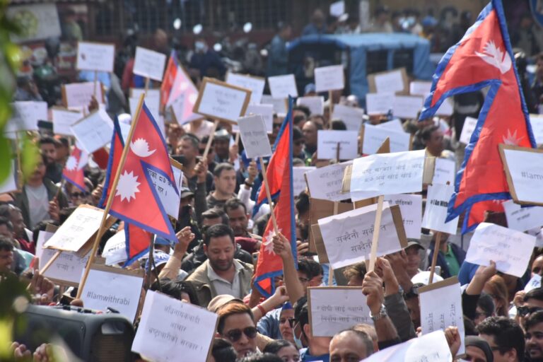 सभापति पक्राउ परेदेखि नै राजनीतिक पूर्वाग्रह राखिएको भन्दै रास्वपा नेता, कार्यकर्ताले विरोध प्रदर्शन गर्दै आएका छन् । आज लामिछानेलाई म्याद थपका लागि तेस्रोपटक अदालत उपस्थित गराउनेबेला बाहिर उनका कार्यकर्ताहरुले प्रदर्शन गरेका हुन् । file photo