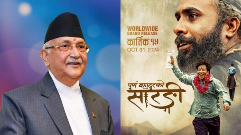 काठमाडौं । कार्तिक १५ गतेबाट प्रदर्शनरत चलचित्र पूर्णबहादुरको सारङ्गी हेर्न प्रधानमन्त्री केपीशर्मा ओलीलाई निम्तो आएको छ। चलचित्रको निर्माण पक्षलाई फिल्म हेर्न आउनका लागि निमन्त्रणा दिएको ओलीले जानकारी दिएका छन् । फिल्म हेर्ने निम्तो आएपनि समय अभावका कारण हलमा जान नपाएको प्रधानमन्त्रीको भनाइ छ ।
