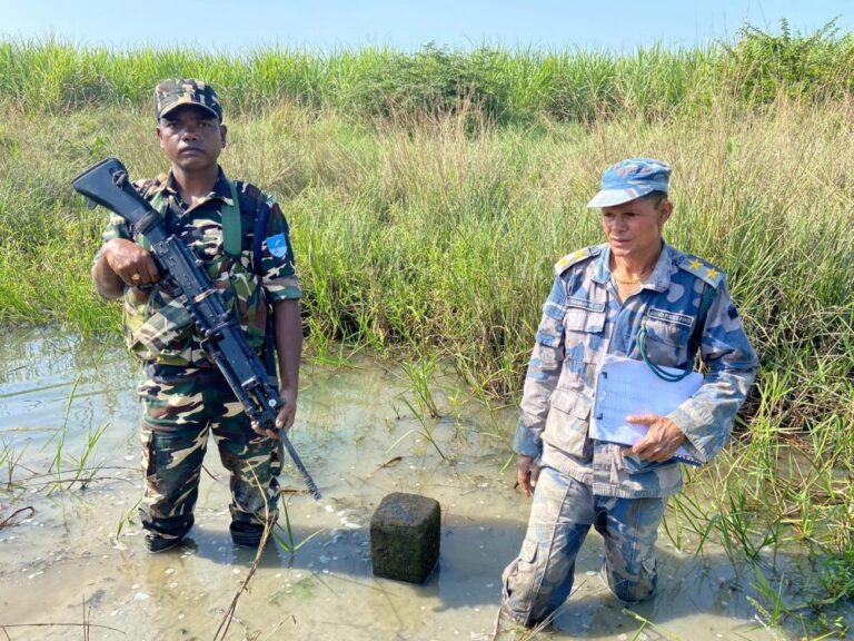 संयुक्त टोलीद्वारा सीमास्तम्भको निरीक्षण