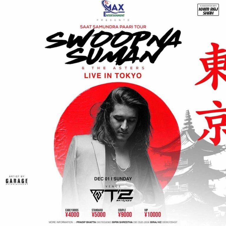 टि–२ सिनजुकुमा हुने कार्यक्रममा चार हजार जापानी येन चार हजारदेखि १० हजारसम्मको टिकट मूल्य रहेको छ । ३ बजे कार्यक्रमस्थलमा प्रवेश खुला गरिनेछ भने ६ बजेबाट कार्यक्रम सुरु हुनेछ । म्याक्स इन्टरटेनमेन्टको प्रस्तुुति रहेको कार्यक्रममा स्वप्न सुमनले आफ्ना ब्यान्टसहित दर्जन लोकप्रिय गीत गाउनेछन् ।