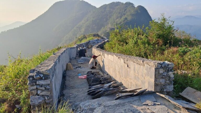 थापाका अनुसार अहिले दुवैतर्फ पर्खाल लगाउने, सिँढी बनाउने, पर्खालको दायाँबायाँ भित्तामा स्लेट ढुङ्गा छाप्नेलगायत काम भइरहेको छ । उनले भने, “केही समय यसको काममा ढिलाइ भएको थियो, गाउँपालिकाले ताकेता गरेसँगै अहिले कामको गति बढेको छ ।”