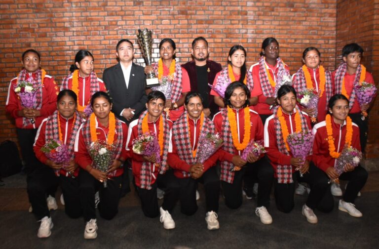 काठमाडौं, २९ कार्तिक । नेपाली यू-१९ महिला टोली फर्किएको छ । आइसिसी महिला यू-१९ विश्वकप २०२५ मा छनोट भएको नेपाली टोलीलाई काठमाडौंस्थित् एयरपोर्टमा आज भव्य स्वागत गरिएको छ।
