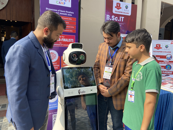 न्युटन स्कुलका रिपेक्स कार्कीले रोबोटको छेउमा पुगरे जिस्कँदै उसको नाम सोधे । मानव आकृतिको रोबोटले आफ्नै परिचय दिँदै गयो । कार्कीले सुनेर रमाइलो मान्दै अरु थप जिज्ञासा राख्न थाले । यतिबेला बत्तिसपुतलीस्थित अनुपम फुड ल्याण्डमा भइरहेको ‘स्टार्टप एण्ड आइडिया फेस्ट–२०२४’ मा रोबोटसँग भलाकुसारी गर्न पाउँदा युवाहरूको आकर्षण बढेको छ ।
