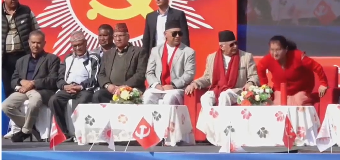 काठमाडौं । सत्तारुढ दल नेकपा एमालेको काठमाडौंमा भइरहेको जागरण सभालाई सम्बोधन गर्न प्रधानमन्त्री केपीशर्मा ओली दरबारमार्ग पुगेका छन् । पार्टी अध्यक्षसमेत रहेका ओली सभालाई सम्बोधन गर्न सभास्थल दरबारमार्ग पुगेका हुन् ।