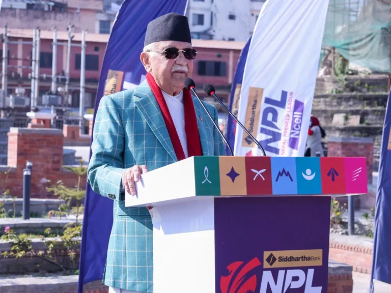 काठमाडौँ, १० मङ्सिर । प्रधानमन्त्री केपी शर्मा ओलीले नेपाल प्रिमियर लिग (एनपिएल) ले नेपालको पर्यटन प्रवर्द्धन र युवा प्रतिभालाई अन्तर्राष्ट्रिय मञ्चमा प्रस्तुत गर्न प्रत्यक्ष सहयोग पुग्ने बताए ।