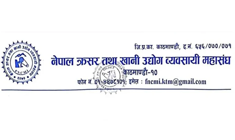 काठमाडौँ, ११ मङ्सिर । नेपाल क्रसर तथा खानी उद्योग व्यवसायी महासङ्घले कानुन अनुसार दर्ता भएका क्रसर, बालुवा तथा खानी उद्योगबाट नियमानुसार दस्तुर लिई अविलम्ब नवीकरणको व्यवस्था मिलाउन माग गरेको छ ।