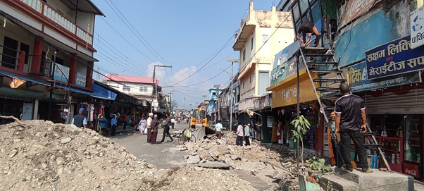 झापा, ११ मङ्सिर । यहाँको मेचीनगर नगरपालिका–९ र १० स्थित धुलाबारी बजार क्षेत्रमा सडक अतिक्रमण गरेर वर्षौदेखि बनाइएका घर टहरा नगरापालिकाले आजदेखि हटाउन थालेको । विश्व बैंकको सहयोगमा सडक स्तरोन्नति हुन लागेकाले अतिक्रमित संरचना छिटो हटाउनु पर्ने बाध्यता भएको नगरप्रमुख गोपाल बुढाथोकीले बताए ।